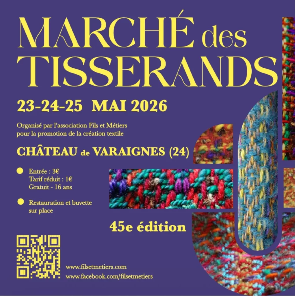 Le Marché des tisserands de Varaignes est pour l’occasion locale de vous présenter mes laines artisanales. Très proche de l’agglomération d’Angoulême, facile d’accès, la visite de ce marché vous ravira.